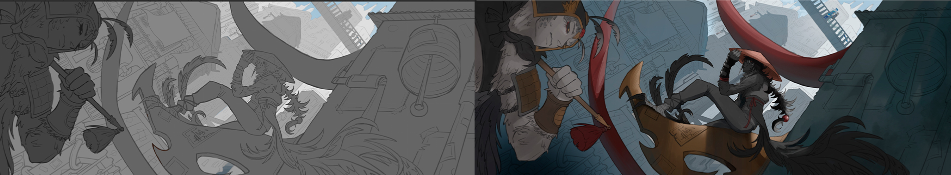 When I am in the line art stage, I always use heavier lines for the