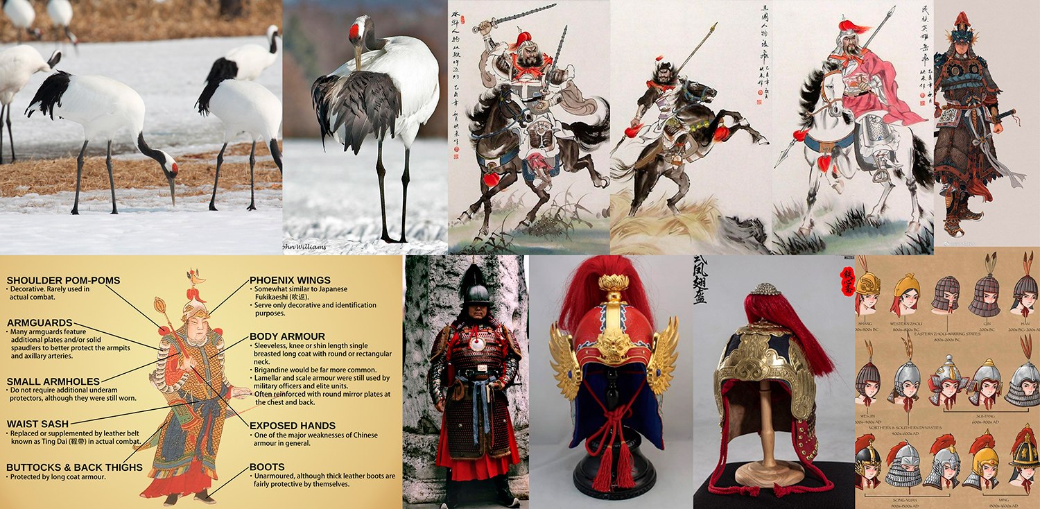 that the helmets of ancient China are often adorned with bird